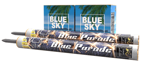 Blue Sky). Opening with a blue mine. To vast bright blue comet tails. With blue falling leaves. And finishes with a blue peony finale. Not to mention filling the sky with various amazing blue effects. As well as two of our rapid firing roman candle barrages (