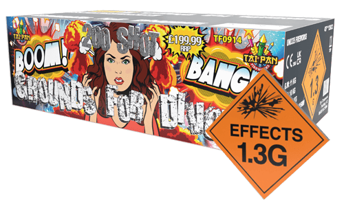 An exceptional 200 shot two-piece compound firework! Combining 2 x 100 Shot finale fireworks to deliver a jaw-dropping spectacle with stunning red glitter & blue star lift mines that lead to colossal brocades, and enchanting allure of dragon eggs and red strobes. Prepare to be mesmerized by this simply awesome fireworks extravaganza! The first piece of this magnificent barrage sets the stage with its grandeur. It ignites with a resounding burst. Unleashing a cascade of huge gold hanging willows. That mesmerize all who gaze upon them. These golden beauties are accompanied by a magnificent chrysanthemum crackle, enveloping the sky with a symphony of golden sparks. The spectacle commences with a dazzling display of a gold and blue star mine. Leaving spectators in a state of awe as the vibrant colours unfold before their eyes. As the first piece takes its final bow, the second piece takes centre stage. Igniting the sky with a breath-taking display of its own. Enormous gold willows soar into the heavens, leaving trails of brilliance in their wake. Accompanying these dazzling golden wonders are ruby red strobing pearls, adding an enchanting flair to the spectacle. The sky becomes a exciting blend of colour and light, as glittering gold and blue star mines further enhance the visual feast.