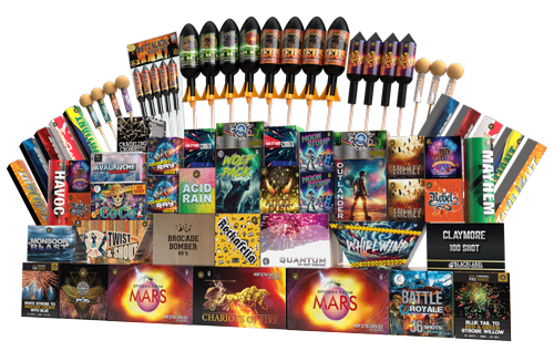 The Invincible Display is a superb collection of large, high-quality fireworks. That will make a fantastic show for big crowds. It's perfect for events such as Round Table, Parish Council celebrations or larger organized events. With audiences of 1000 or more. This pack includes a wide range of massive fireworks. Such as rockets, Roman candles, barrages, and single ignition cakes, all categorised as 2 or 3. This means that it is recommended to have a safety distance of 8 to 25 metres.