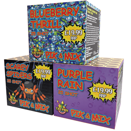 With 25 shots of red and silver fireworks, the Scarey Spiders will paint the sky with a mesmerizing display that demands attention. Therefore, each shot rockets into the air, it's as if the night sky itself is ablaze with fiery brilliance. The combination of red and silver creates a striking contrast, intensifying the visual impact and creating an atmosphere of anticipation. But here's where the Scarey Spiders truly weaves its magic. Just when you think you've seen it all, the firework unleashes its final surprise—a burst of dragon's eggs! Picture the illusion of these mythical eggs suspended in the air, while captivating your guests and adding an extra layer of intrigue to the show. It's a moment that will linger in their memories long after the night is over. Part of our Pik n Mix 1