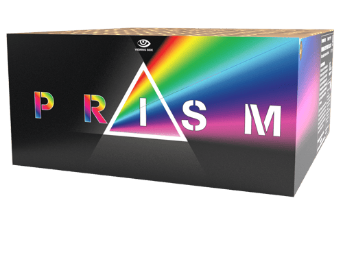 Seeing is believing with Prism. With this magnificent 120 shot cake. Which offers astonishing straight and angled shots. With fabulous wide and varied effects. With blue tail to blue stars. And redfish. With blue tail to blue stars. And green fish. Including red wave tail to red wave chrysanthemum. And green wave tail to green wave chrysanthemum. including red tail to white strobe. With blue tail brocade crown. With golden tail to golden willow, red and green strobe. And red tail to brocade crown chrysanthemum. Additionally, Prism with its spectrum of colours offers a noise rating of 8 out of 10. with a wonderful duration of 50 seconds. From this category 3 firework cake. Prism is a real must-have for your firework display. Like the colours and effects of Prism? But without the bangs. Then head on over to
