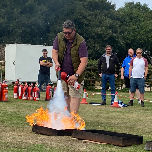 Alongside classroom-based training, the course features a practical session using fire extinguishers. Everyone is encouraged to have a go to familiarise themselves with extinguishers and how they operate on different types of fire. The course also includes basic first aid training provided by an experienced paramedic.