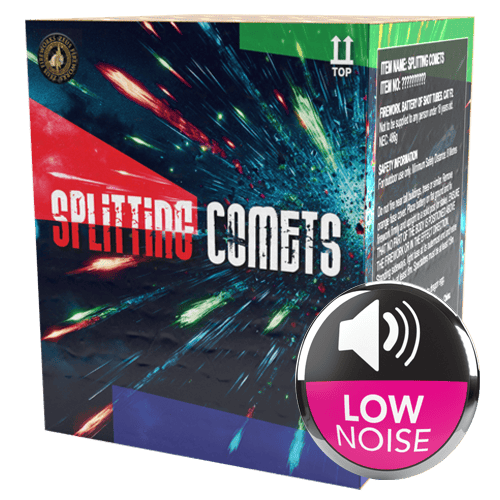 With a safety distance of just 15 metres, Splitting Comets is ideal for smaller back gardens, family events, or quiet neighbourhood displays. It brings the magic of professional fireworks to your celebrations without the loud bangs—perfect for pet-friendly parties or areas with noise restrictions.