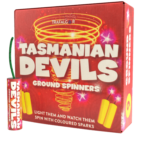 Let the mischievous magic loose with Tasmanian Devils Ground Spinners—a zippy set of outdoor-safe pyrotechnic wonders that whirl, buzz, and dazzle like mini firework tornadoes. With magical spinning effects and a cheeky personality to match, these CAT F1 classified novelties are ideal for adding a burst of joy to parties, celebrations, or just a whimsical evening outdoors.