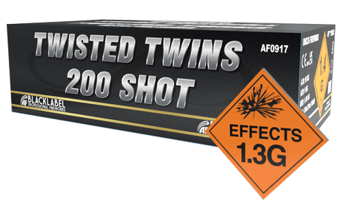 This pack includes two of our high-quality fireworks, called Twisted Twins. Each firework has 100 shots and is designed for professional displays. They come with both primary and reserve fuses. These fireworks are among the best on the market, and once you see the video, you'll understand why. Twisted Twins Two 100 shot barrages, that will add an extra special touch to any professional or garden display. When you ignite them, you can sit back and enjoy a stunning spectacle in the night sky. They create beautiful bursts of vibrant colours, including green, red, purple, and gold glitter. The effects are accompanied by loud bursts, adding excitement to your celebration. These fireworks will make your celebration night unforgettable, filling the sky from left to right with amazing effects and colours. They provide a bonfire night, or New Year's Eve experience full of happiness and enjoyment. The Twisted Twins pack contains two CAT 3 fireworks, which are classified as 1.3G. They are of professional quality and known for their impressive performance. The Twisted Twins fireworks are packaged in steel mesh, ensuring safe storage (1.4G storage). They also feature dual fusing, adding an extra layer of safety. Also we know that all good things come in pairs, so click on the link to take a look at the EXPERT TWIN PACK